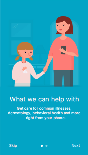 Once we started developing and testing flows, we realized that many users were still quite unfamiliar with telemedicine – and realized how critical a good feature onboarding experience would be. We worked through many iterations, some up to 4 screens long. Once we had iterated, I took all of the information we were trying to communicate and simplified our feature onboarding experience into 2 screens: What we can help with, and how it works.